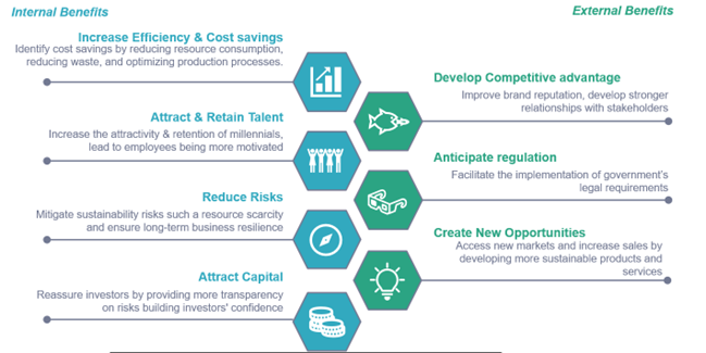 While the initial reporting process may be demanding, the benefits, both internal and external—efficiency, innovation, transparency, opportunities, talent attraction and resilience—far outweigh the challenges.